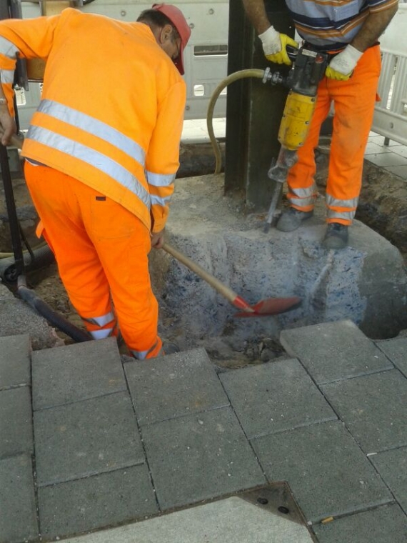 Neuverlegung der Regenwasserleitung und Schließen der Oberfläche.