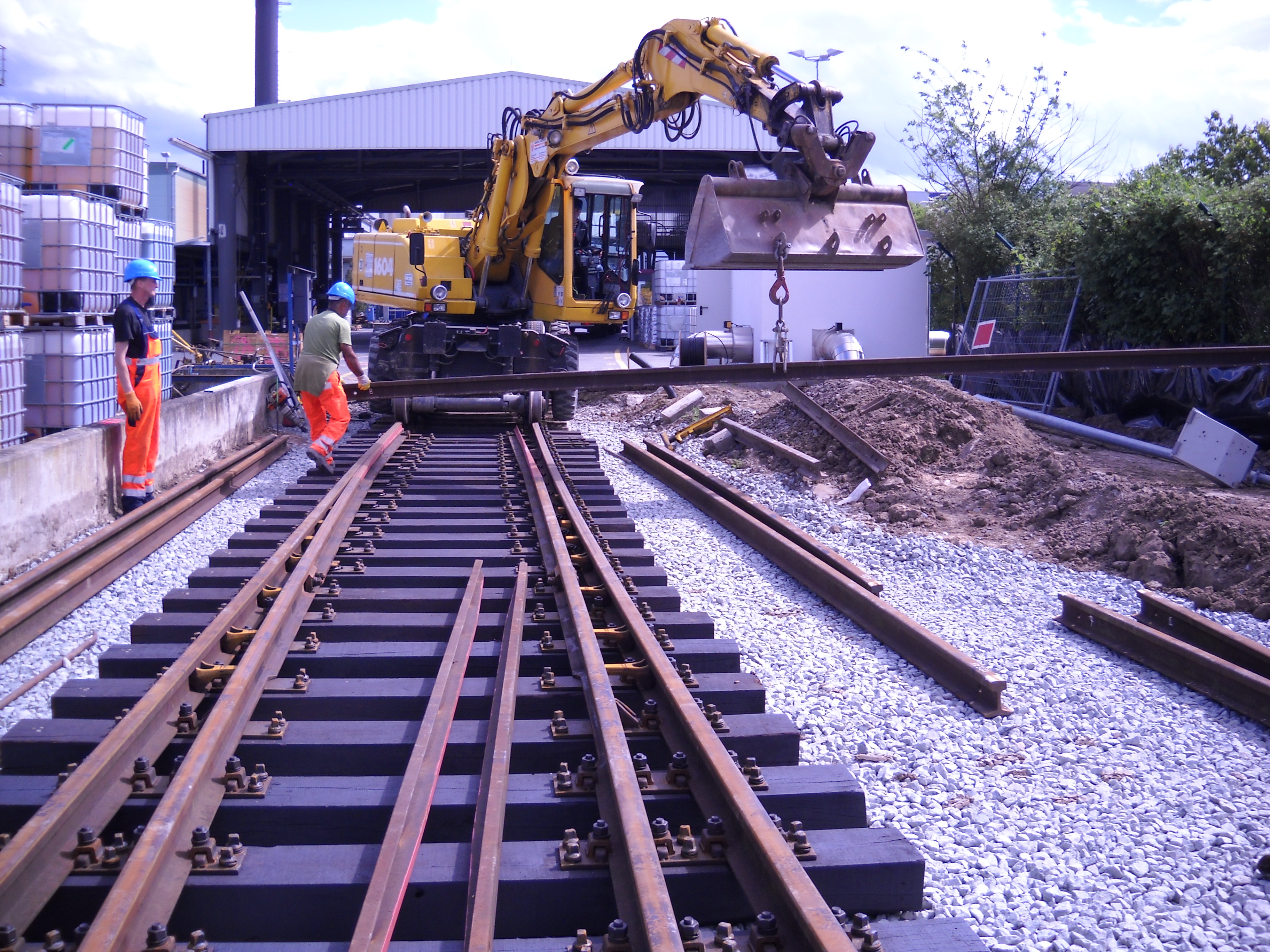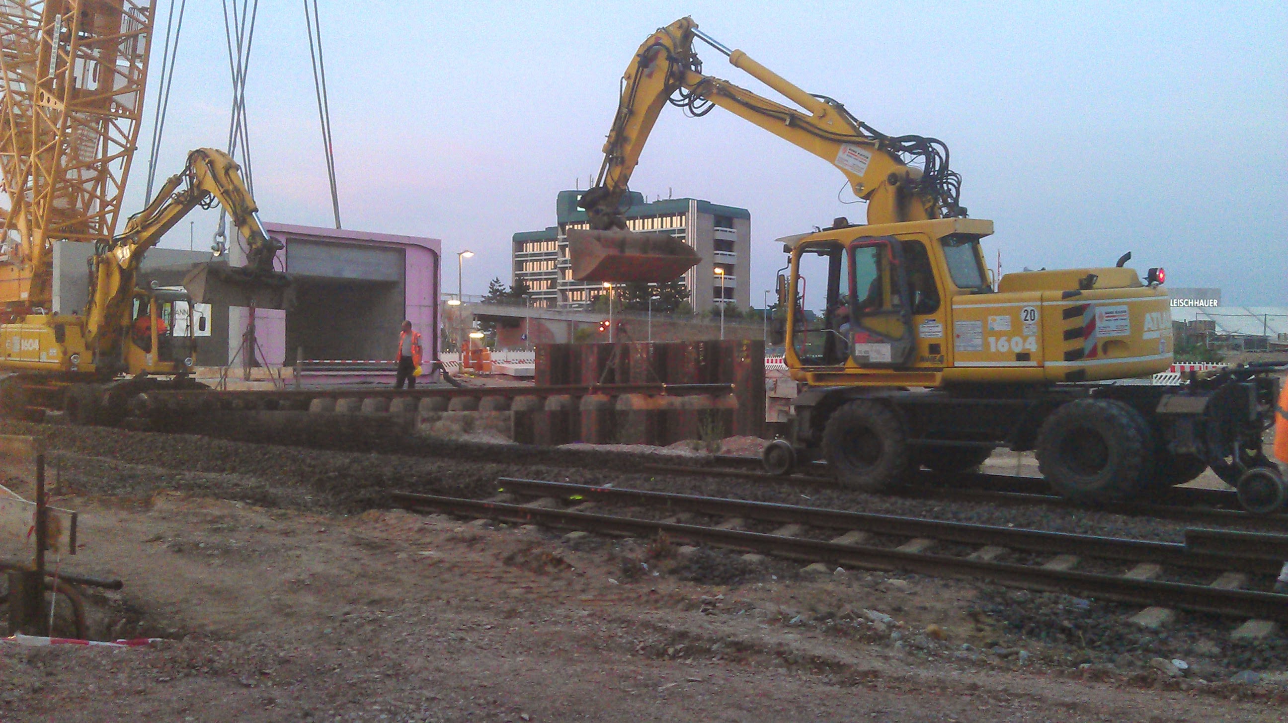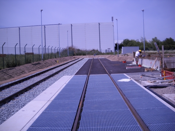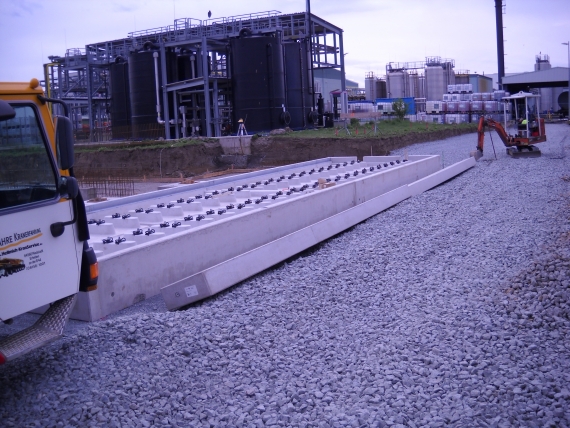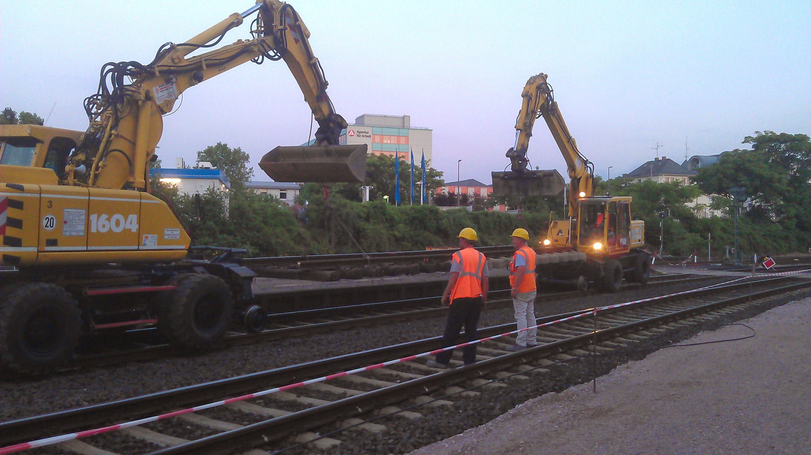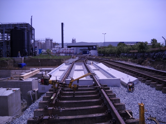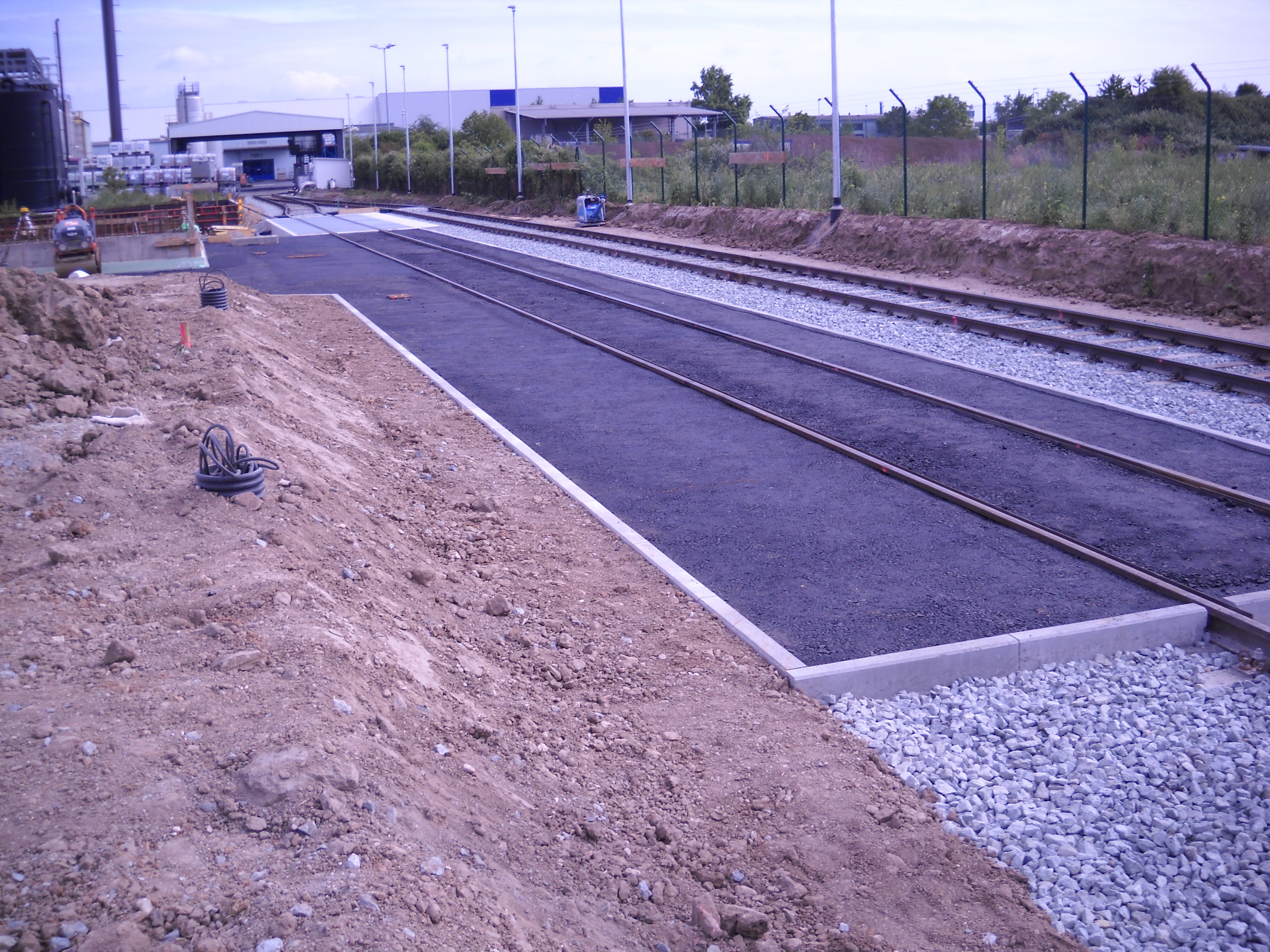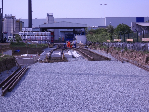 Gleis 1: Einbau einer Auffangwanne mit Gitterrosten zur Entladung von Eisenbahnkesselwagen oder Straßenlastkraftwagen.