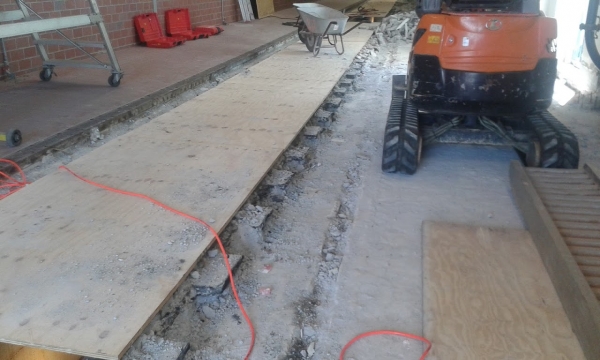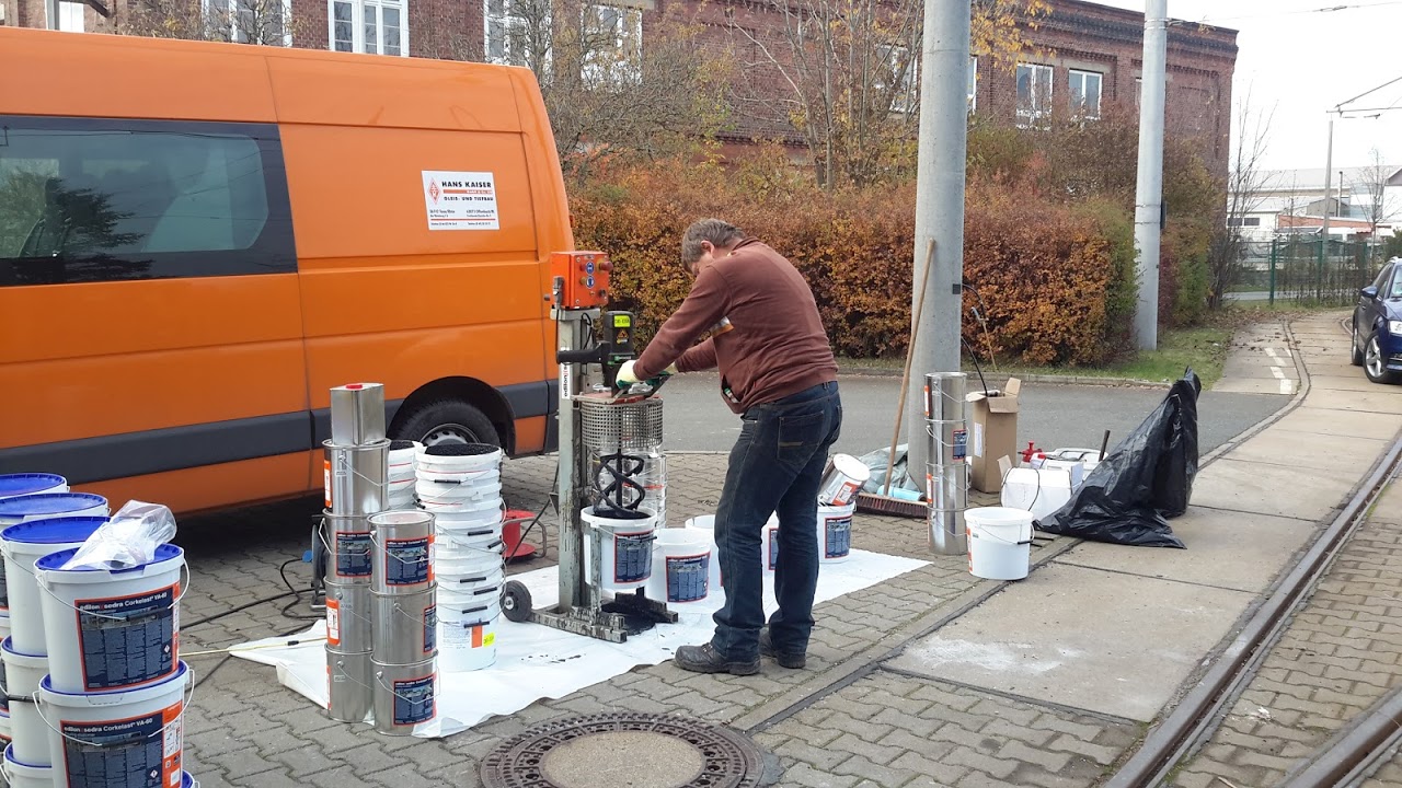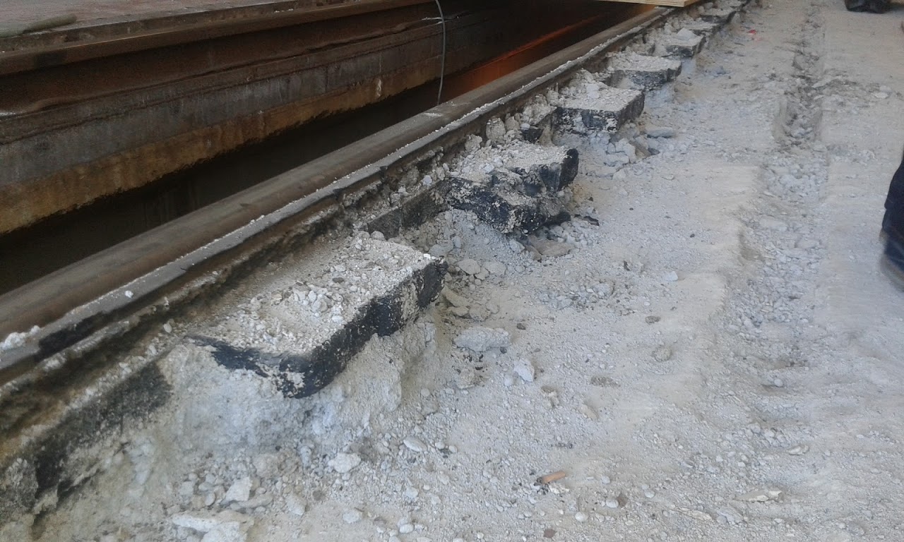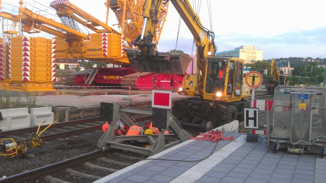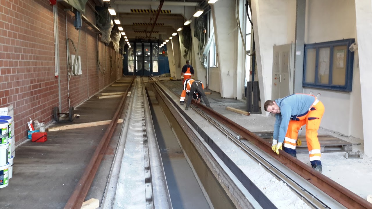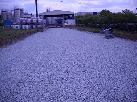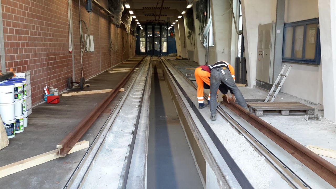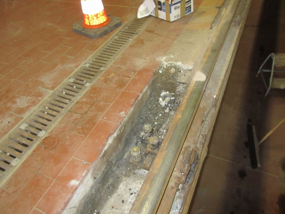 Gleis 1: Einbau einer Auffangwanne mit Gitterrosten zur Entladung von Eisenbahnkesselwagen oder Straßenlastkraftwagen.
