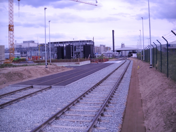 Erweiterung der bestehenden Gleisanlage innerhalb des Werksgeländes der Fa. NALCO. Errichten einer zweigleisigen Industriegleis-Abstellanlage mit Entladestation für Eisenbahnkesselwagen.