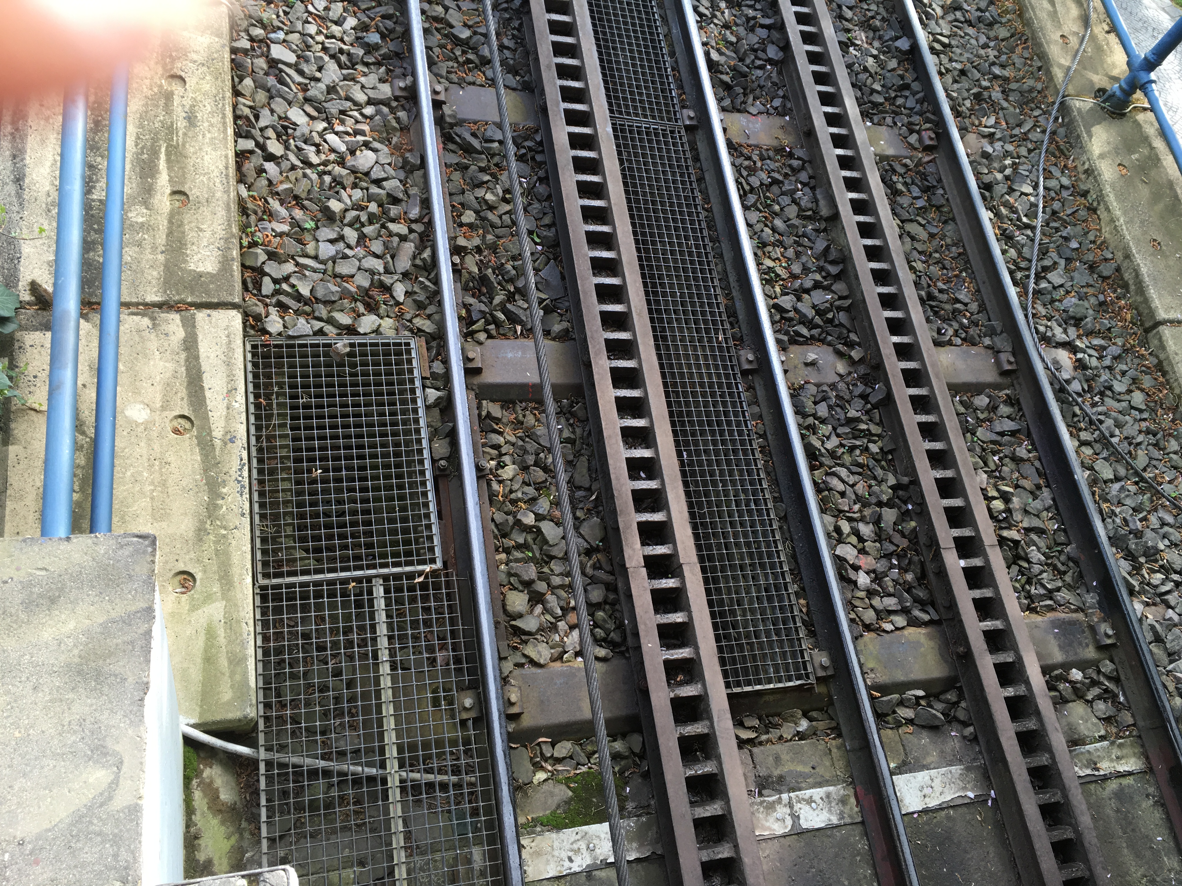 Korrektur der Gleislage punktuell. Besondere Erschwernis durch starke Steigung des Gleises - Maxim. Steigung 25 % der Steilbahn bzw. Zahnradbahn. Stopfen der Stahlschwellen mittels Schwingstopfer.