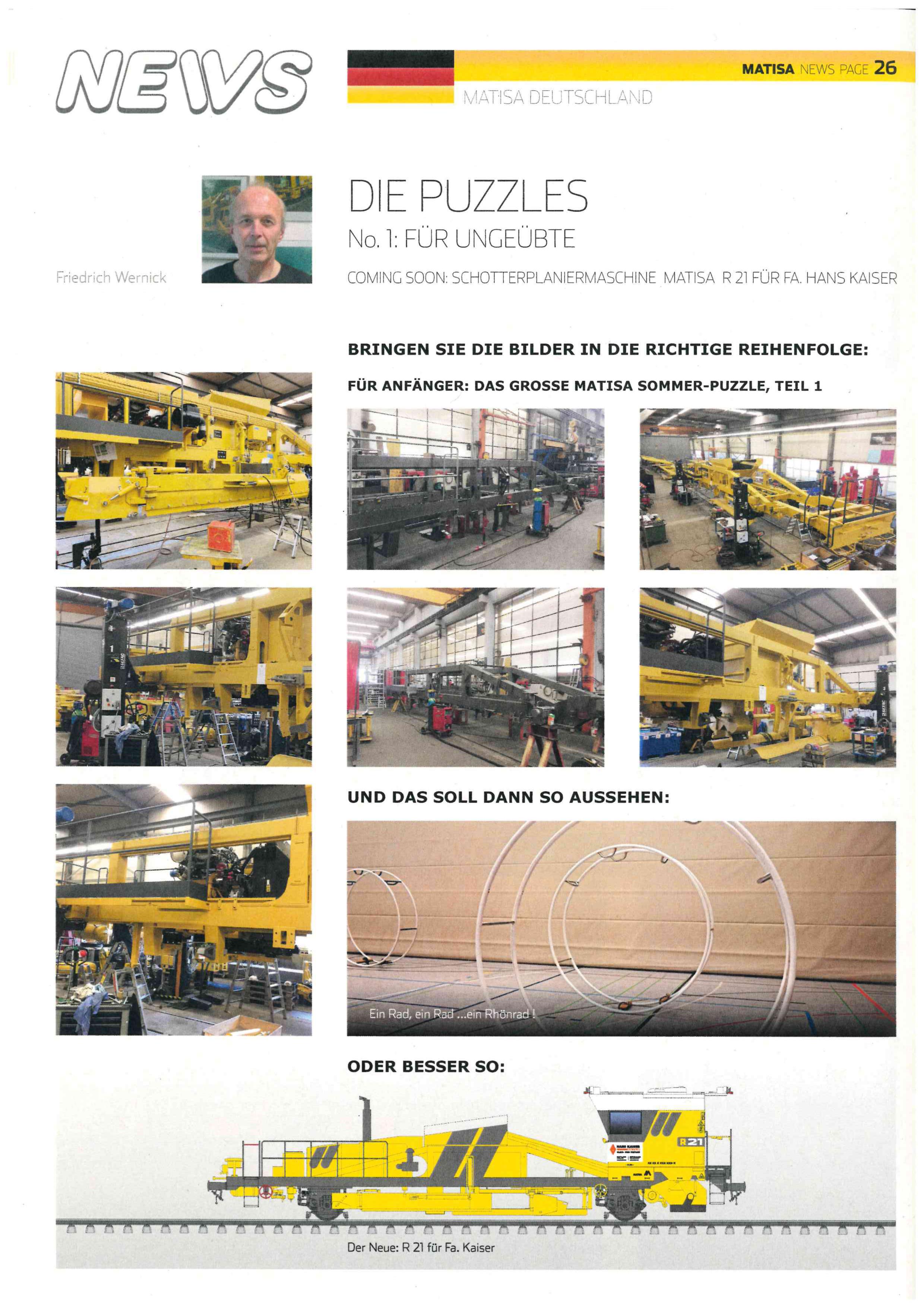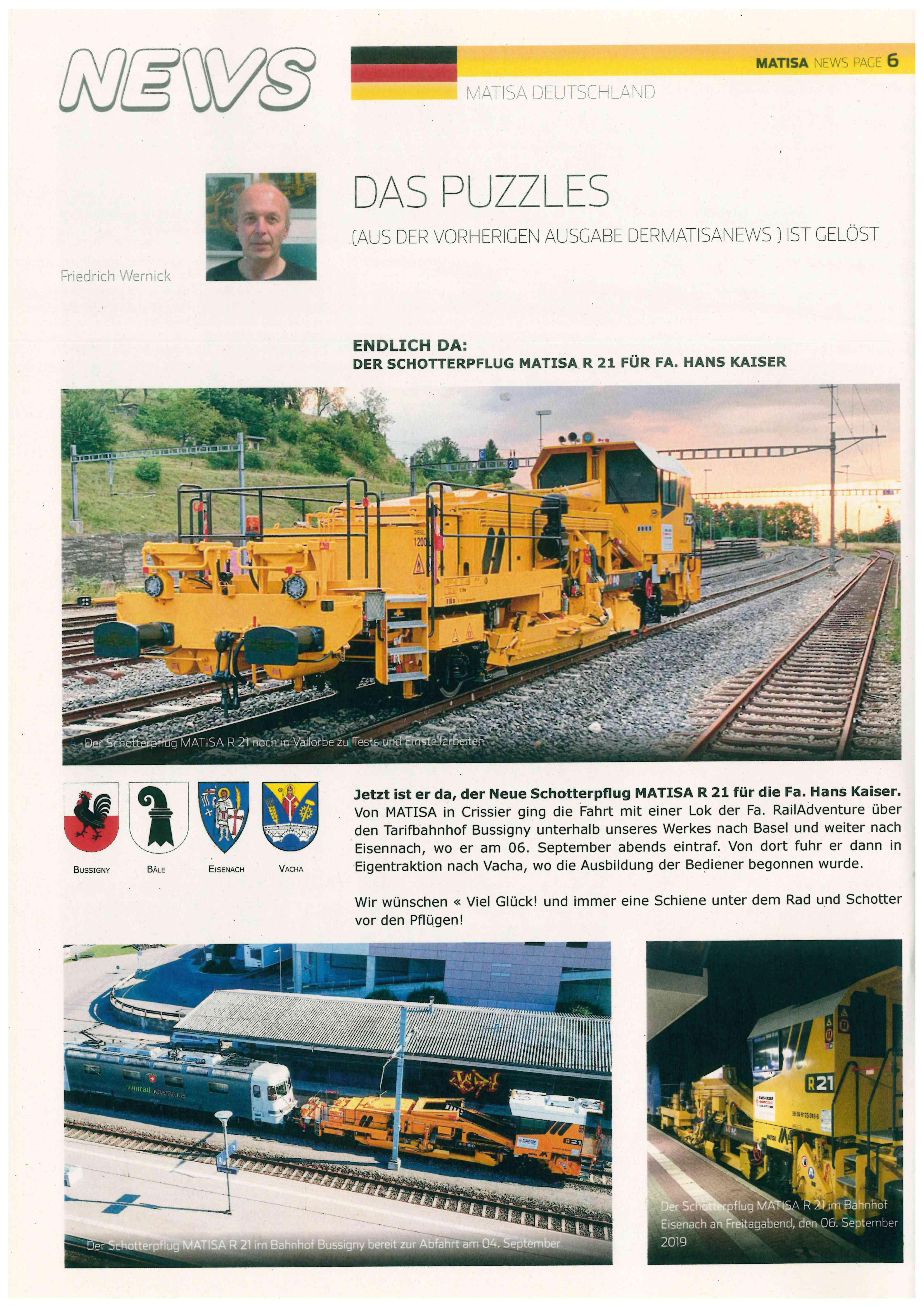 MATISA News zum Schotterpflug MATISA R 21 (2019):