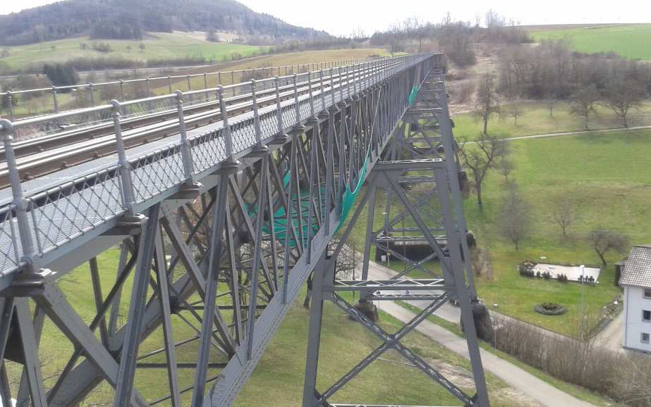Oberbausanierung der Talbrücke Epfenhofen in Form von Brückenbalkenwechsel, Verlegung der Entgleisungsschutzschiene von außen nach innen, Einbau von Schienenauszügen und neuer Fahrschienen sowie Erneuerung der Laufstege.